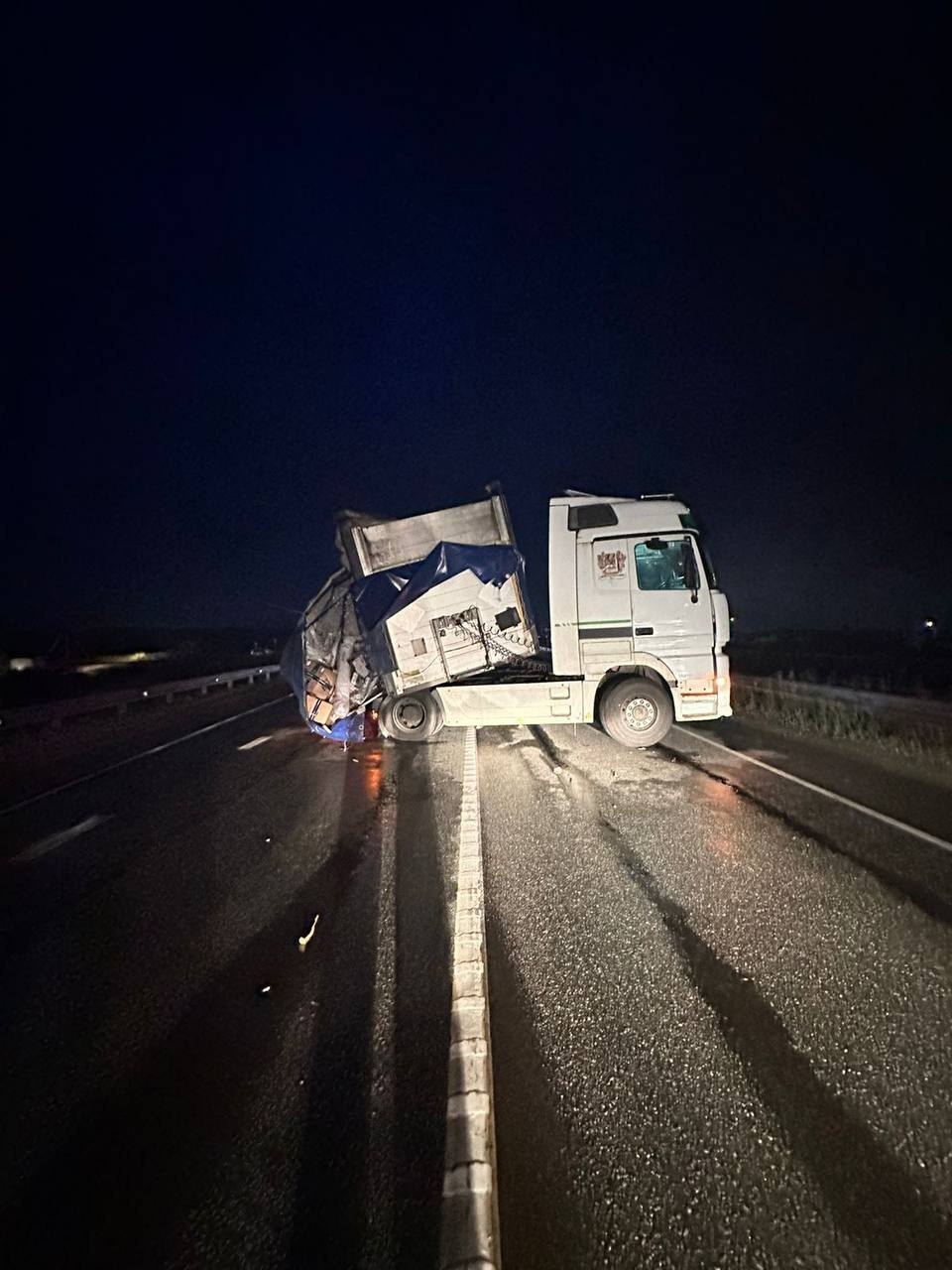 ПодробнееМинувшей ночью в Еманжелинском районе водитель автомобиля «Мерседес» с полуприцепом наехал на женщину, переходившую дорогу в неположенном месте. От полученных травм пешеход скончалась. ️Полуприцеп после аварии опрокинулся. Организован объезд участка.