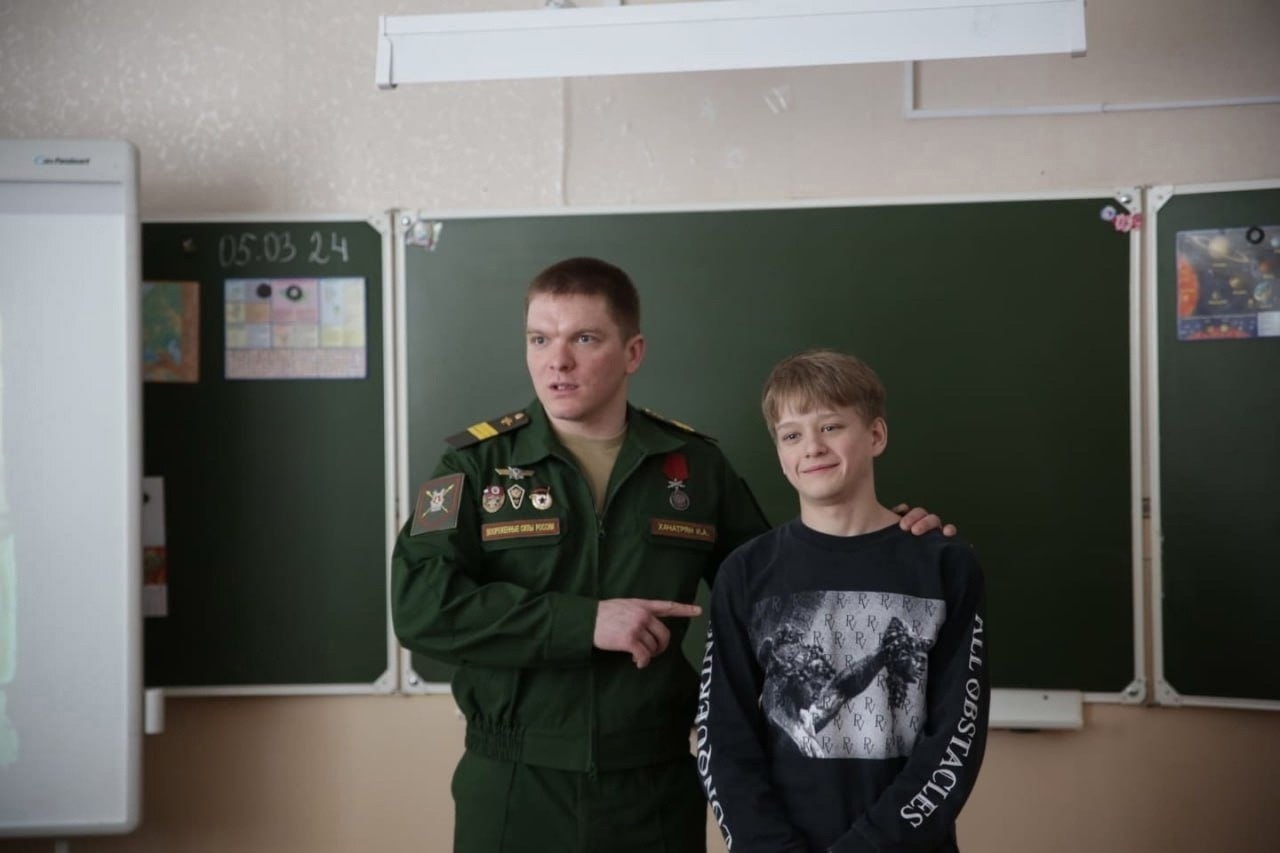 Задали ребята вопрос и о его награде. За проявленный героизм военный был удостоен медали ордена «За заслуги перед Отечеством II степени». Иван рассказал ребятам, как выполнял боевую задачу и на грузовике со снарядами попал под тяжелейший обстрел.