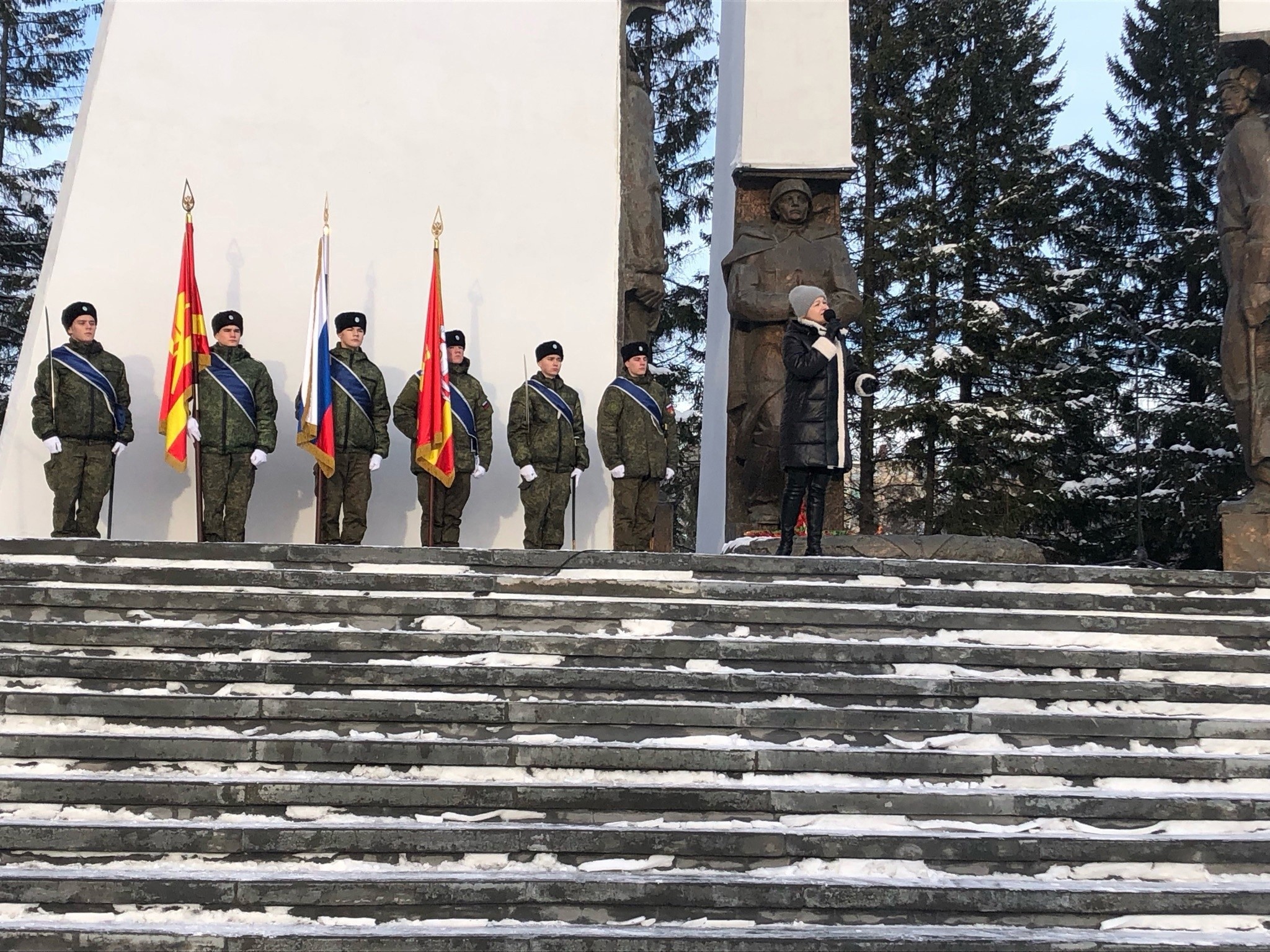 В церемонии приняли участие кадеты Казачьего кадетского корпуса “ЗлатИКа им. П.П. Аносова”, которые гордо несли Государственный флаг Российской Федерации, а также знамена Челябинской области и города Златоуста.