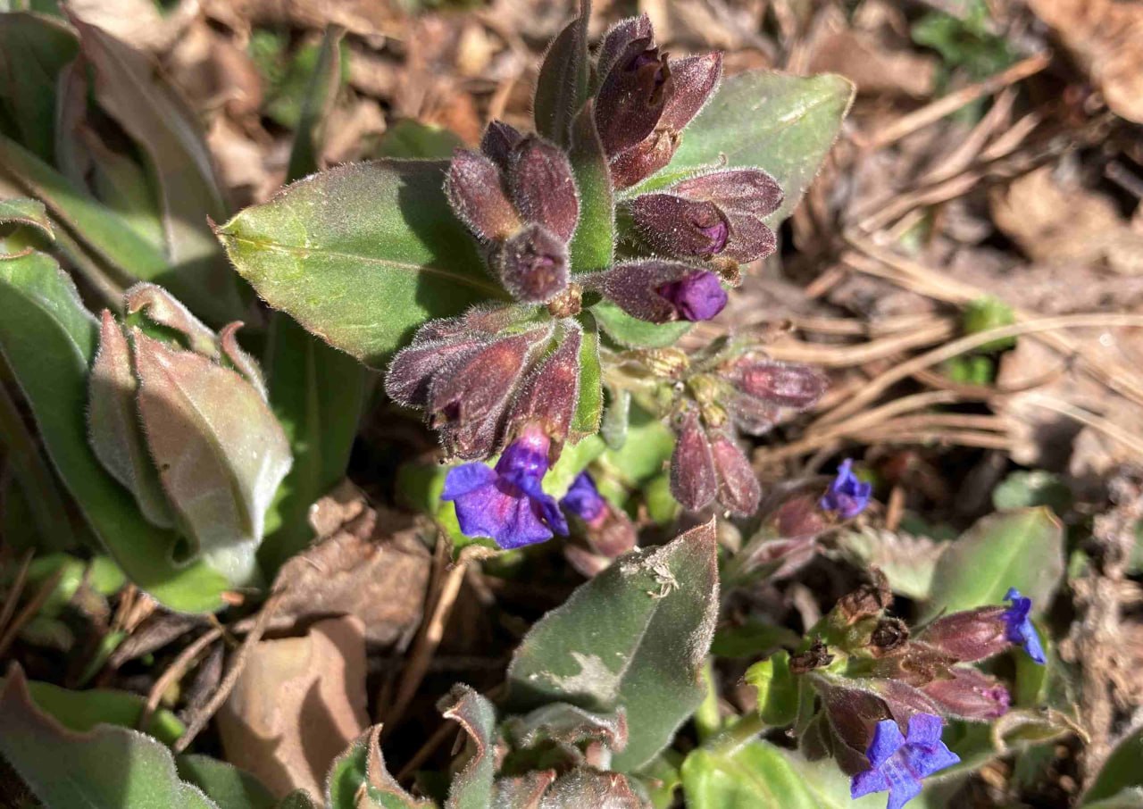 Обычно со временем медуница «линяет»: из розовой становится фиолетовой, а в зрелом возрасте — синей. Однако в этот раз синими были даже нераспустившиеся бутоны.